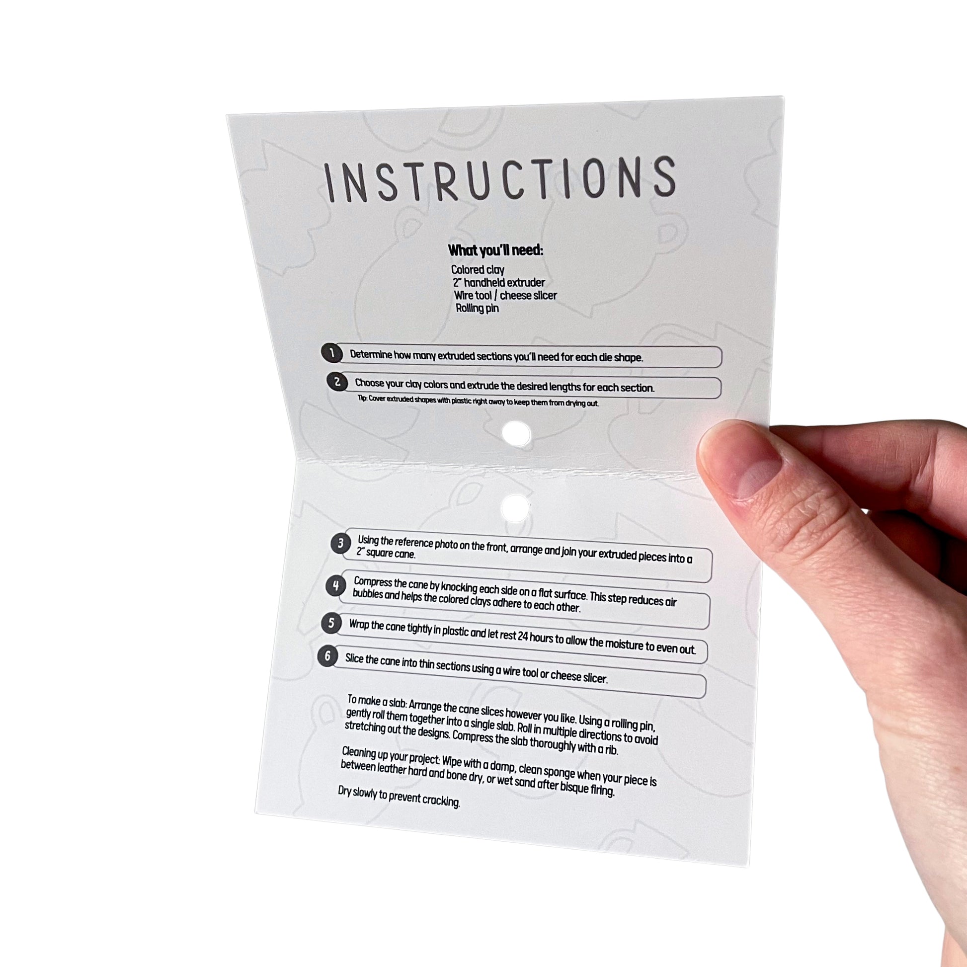 Transform your colored clay into intricate, patterned canes with our 2" Clay Cane Extruder Die Sets. Each die extrudes unique clay shapes that fit together like a puzzle, forming a 2-inch square clay cane of any length you choose. Use cane slices alone or arrange them into grids for mosaic effects.